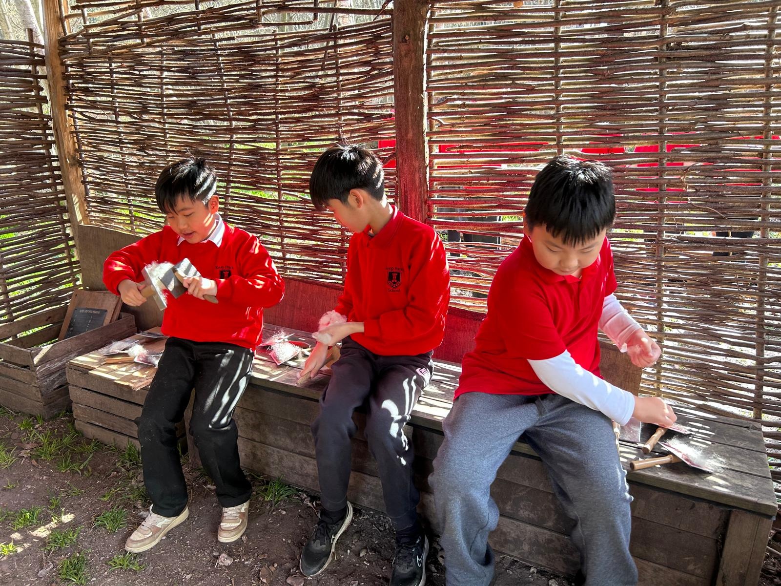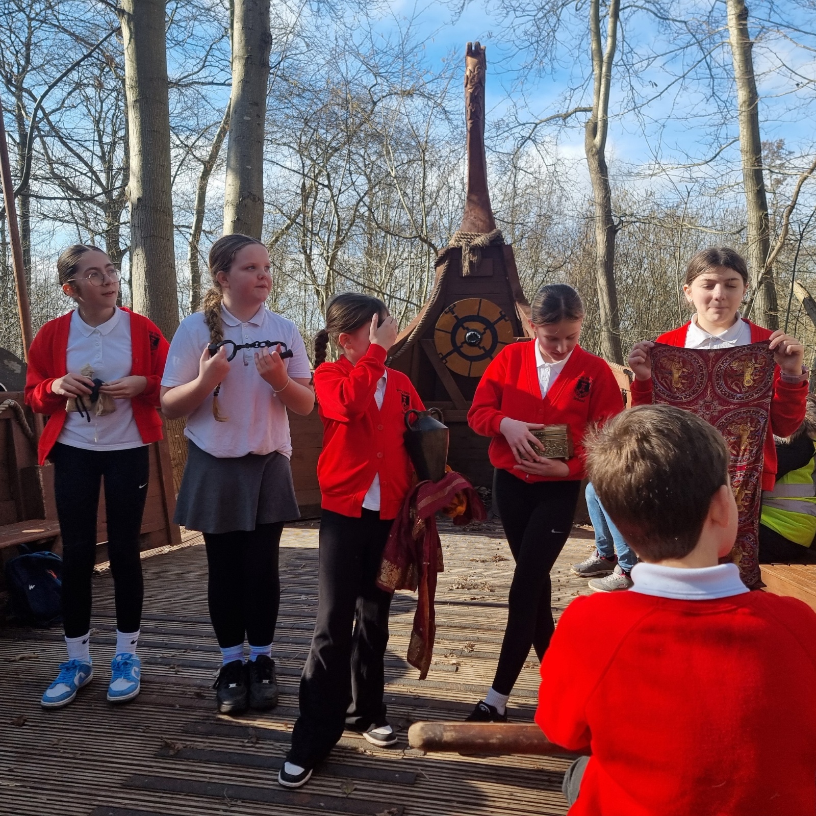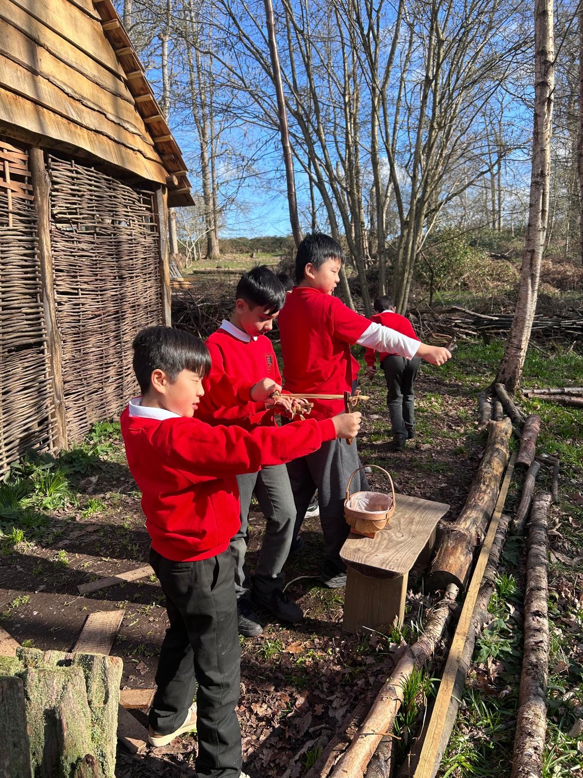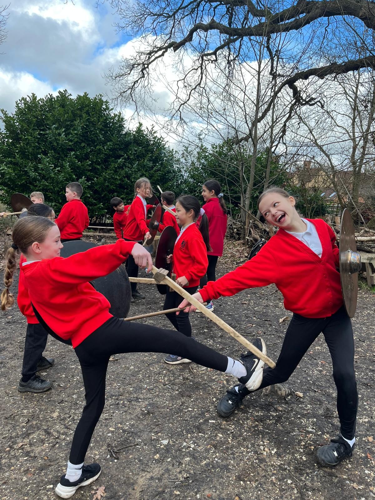 We rowed longboats and raided foreign shores for riches, and we learnt how to fight with swords and axes as well as defend ourselves using a shield. In addition to this, we practised life skills such as carding wool to form thread, milking (pretend) goats and building houses from wattle. Year 5 had a great time and learnt lots too.